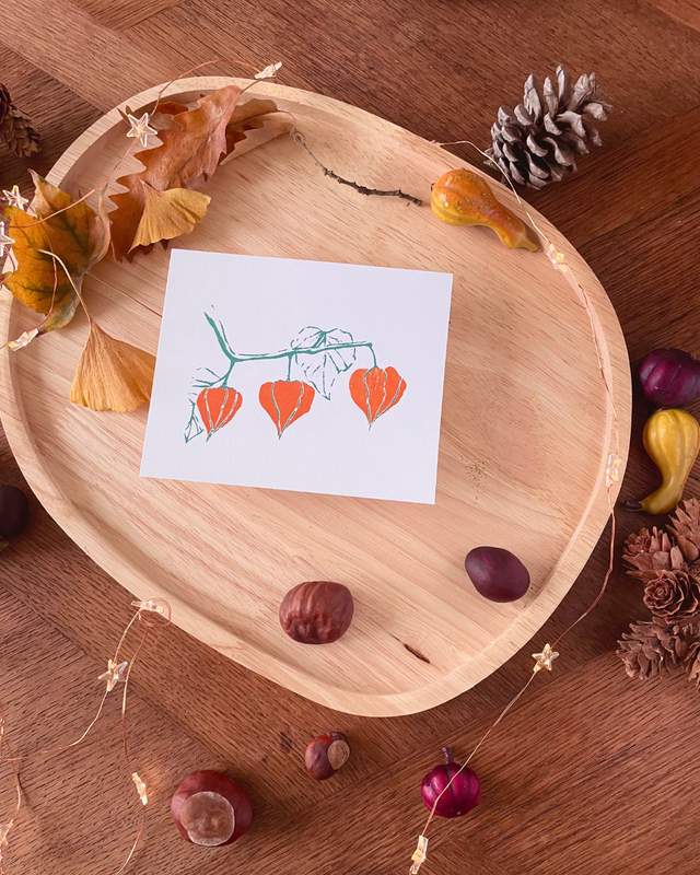 Lot de quatre cartes postales A6 d'automne, sérigraphie en édition limitée et signée.
