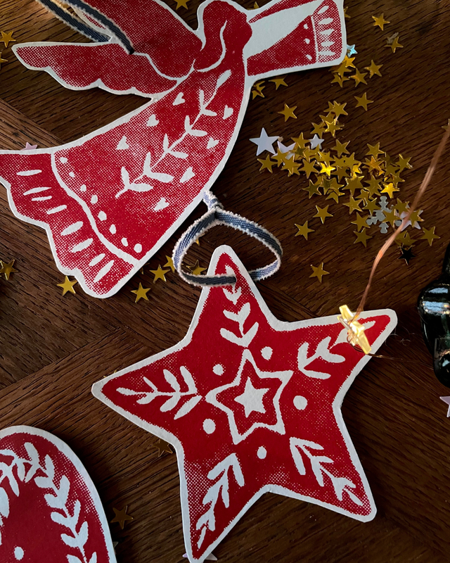 Suspensions sur le thème de Noël, sérigraphie en édition limitée et signée.